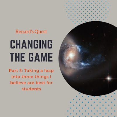 In a period of three years, I have become aware of and begun to incorporate three key practices. Obviously, gamification, which adds such a sense of fun to my room that I will likely use elements of it for the rest of my career. The second is mastery learning, in which we work with students, provide feedback and grow toward mastering a concept. This past year, I attempted the use of the Grid Method from the Teach Better Team (@teachbetterteam on Twitter) in math. All students showed good growth and some made gains were mind boggling.